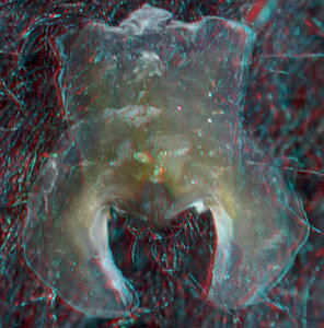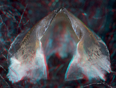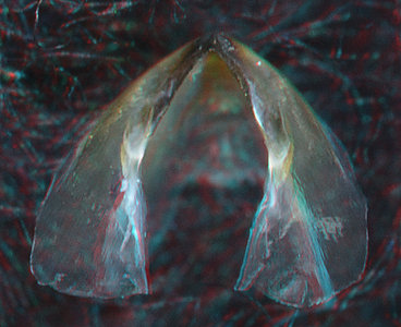 About anaglyph 3D: Photographs here are in 3D, using anaglyph techniques which combines two photographs one in red and the other in cyan (blue + green) color. To get the 3D effect, you must use glasses with red and cyan lenses (filters) over your regular glasses. The form of the beak is far easier to interpret in 3D and we strongly recommend to the viewer that the glasses be obtained (this is especially helpful when viewing enlarged images - i.e. click on the image). These beak photographs were made using Red and Cyan Anachrome Aviator Glasses (see: http://www.anachrome.com/glassbuy.htm or http://www.amazon.com) which cost under $10.00 (USD).