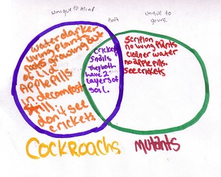 To analyze their ecobottle data, we asked students to make a graph in Excel for as much temperature and pH data as they had recorded. We also asked them to make a Venn diagram comparing their ecobottle with another econbottle in the class. Finally, we had them make "detail drawings" of organisms that were living (or had been living) in their bottle.