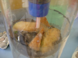 As the project continued, we set up lessons on pH and had students begin tracking the pH of their ecobottles, and for Halloween had students make tombstones to commemorate the organisms that had died in their ecobottles. We asked them more questions about their ecobottle - specifically, what died, what thrived, and why they thought this happened.